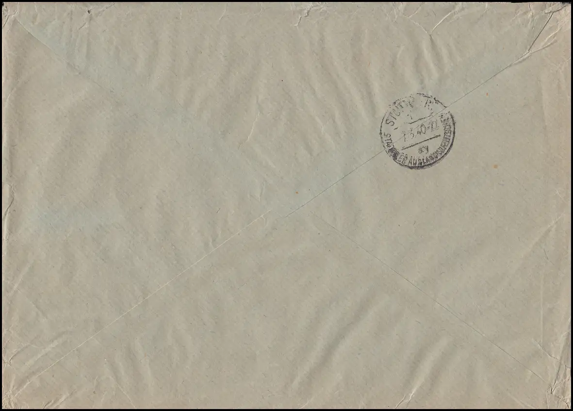mit Ankunftsstempel STUTTGART STADT DER AUSLANDSDEUTSCHEN 1 ay - 7.3..40, Briefstempel "Frei durch Ablösung Reich! ..."