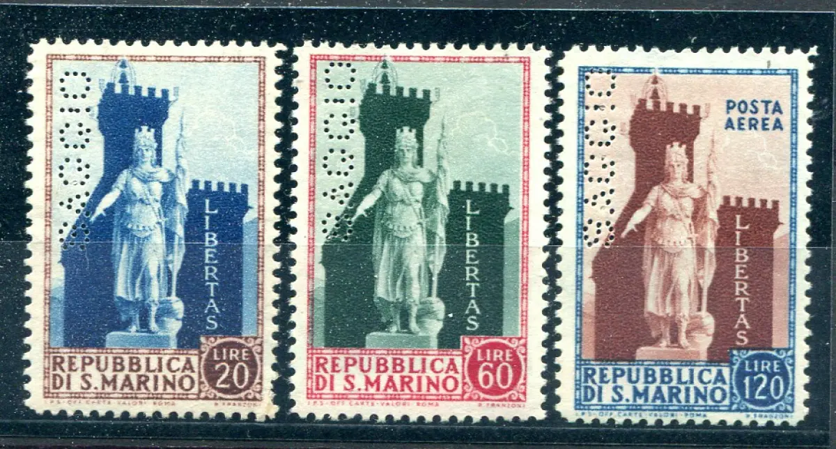 Vollgummi - Freiheitsstatue Nr. 420/421 + P.A. Nr. 113 die Drei-Wert-Serie mit Essay-Bohrung - Uncommon Nr. 769/L