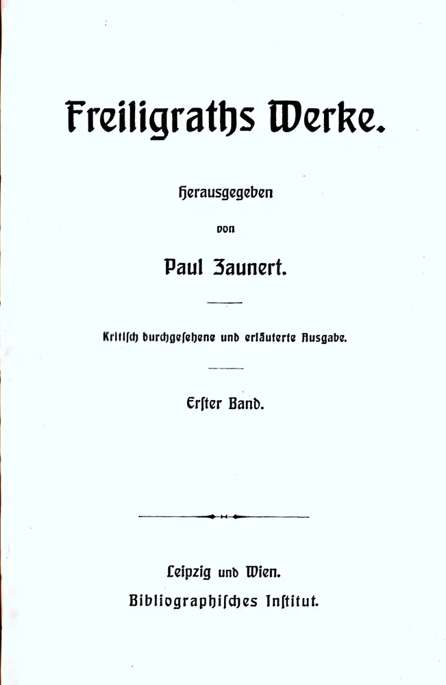 Freiligrath, [Ferdinand]: Werke. 2 Bde. Kritisch durchgesehene und erläuterte Ausgabe. Hrsg. v. Paul Zaunert.