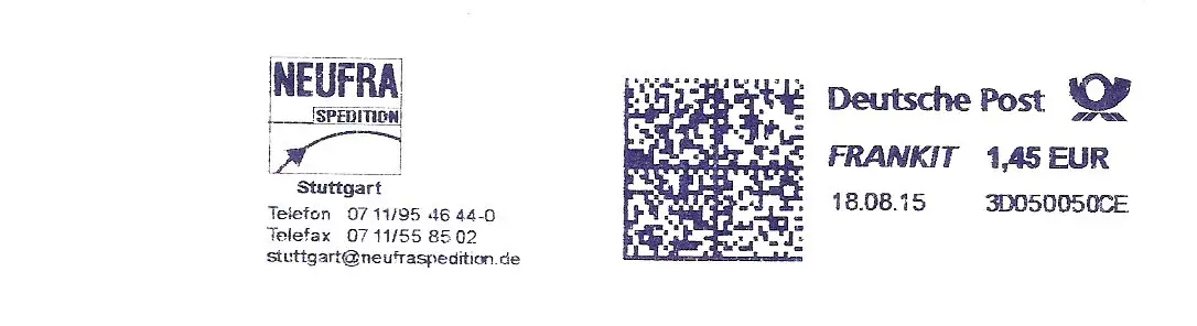 Freistempel 3D050050CE Stuttgart - NEUFRA SPEDITION (#1790)