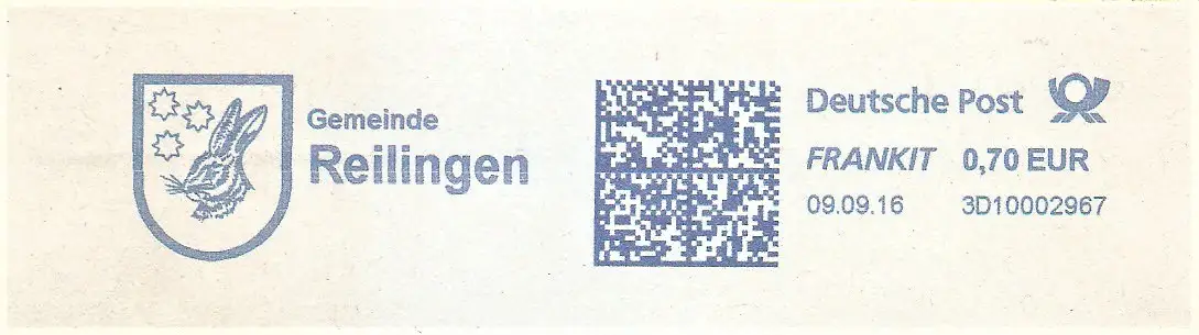 Freistempel 3D10002967 Reilingen - Gemeinde Reilingen (Abb. Wappen mit Hase) (#1818)