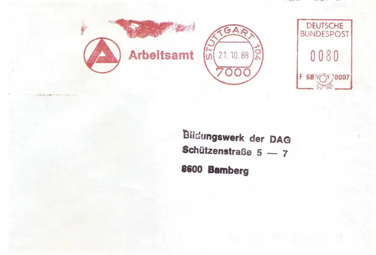 Freistempel F68 0007 Stuttgart - Arbeitsamt (#AFS40)