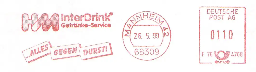 Freistempel F70 4708 Mannheim - HM InterDrink Getränke Service / ... alles gegen Durst! (#809)