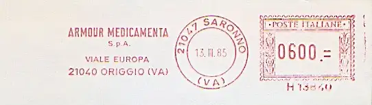 Freistempel Italien H13840 Saronno - Armour Medicamenta / Origgio (#718)