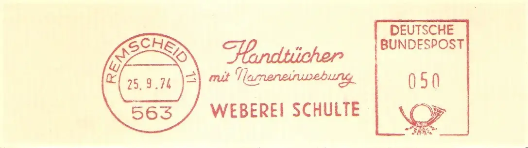 Freistempel Remscheid - WEBEREI SCHULTE / Handtücher mit Nameneinwebung (#2180)