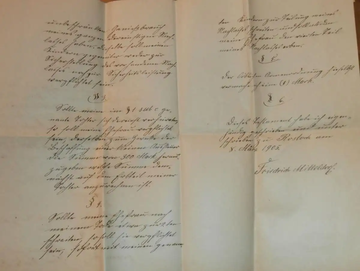 Friederich Mitteldorf in Rostock 1905 , altes Dokument , Marta Dethloff , Mecklenburg !!AZ-WR/1h
