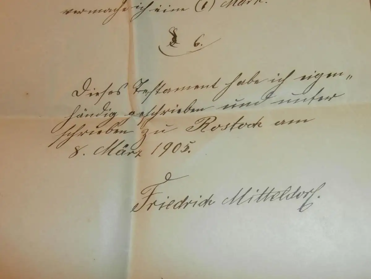 Friederich Mitteldorf in Rostock 1905 , altes Dokument , Marta Dethloff , Mecklenburg !!