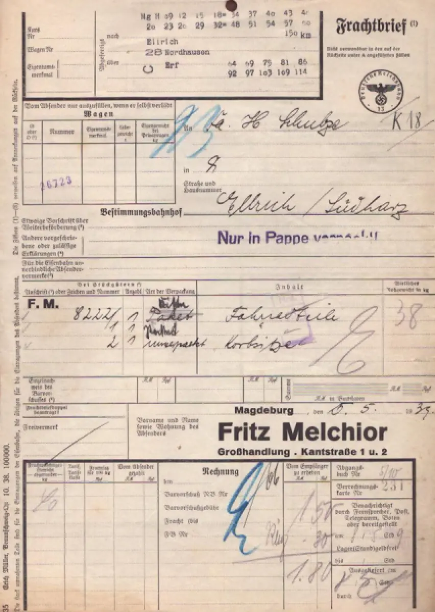 Fritz Melchior Magdeburg Frachtbrief 1939