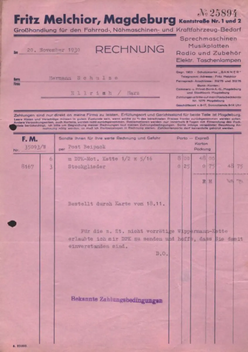 1 SeiteDinA4 Großhandel für den Fahrrad- und den Kraftfahrzeug-Bedarf Magdeburg, Kantstr. 1 Leichte Gebrauchsspuren, gelocht