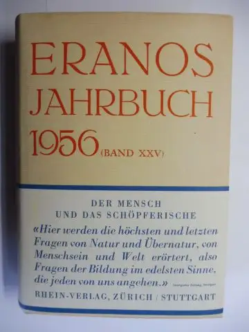 Titel: ERANOS-JAHRBUCH 1956 (BAND XXV) - DER MENSCH UND DAS SCHÖPFERISCHE. Mit Beiträgen (auch ins Engl., Franz.) u.a. v. G.G. Scholem, E. Neumann, H. Corbin, M. Eliade, H. Read, A. Portmann