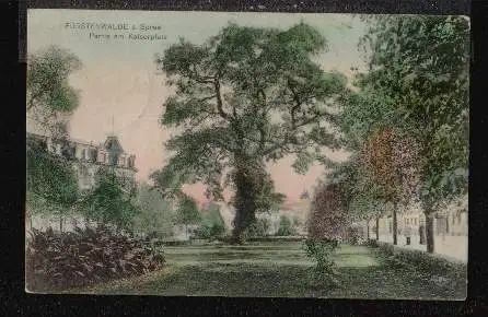 Fürstenwalde a. Spree. Partie am Kaiserplatz - Gelaufen 1910. Kl. Wasserschaden. (NPLZ 15517)