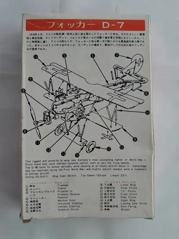 Fuji - Fokker D-VII-1/72-085 50-Bauteile versiegelt-Modellflieger-OVP-1269