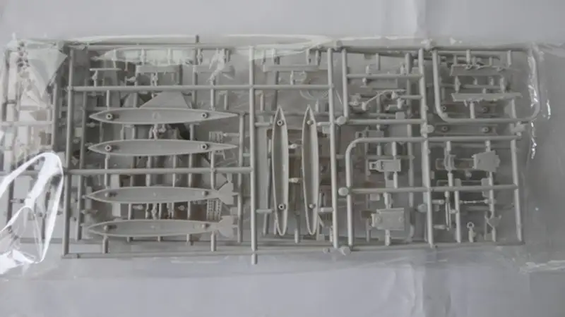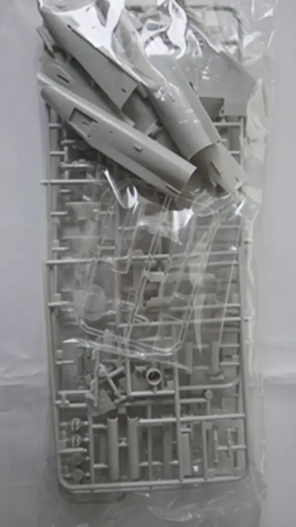 Einzelteile (Plastikbauteile) sind noch am Rahmen fixiert, Sichthülle wurde geöffnet.