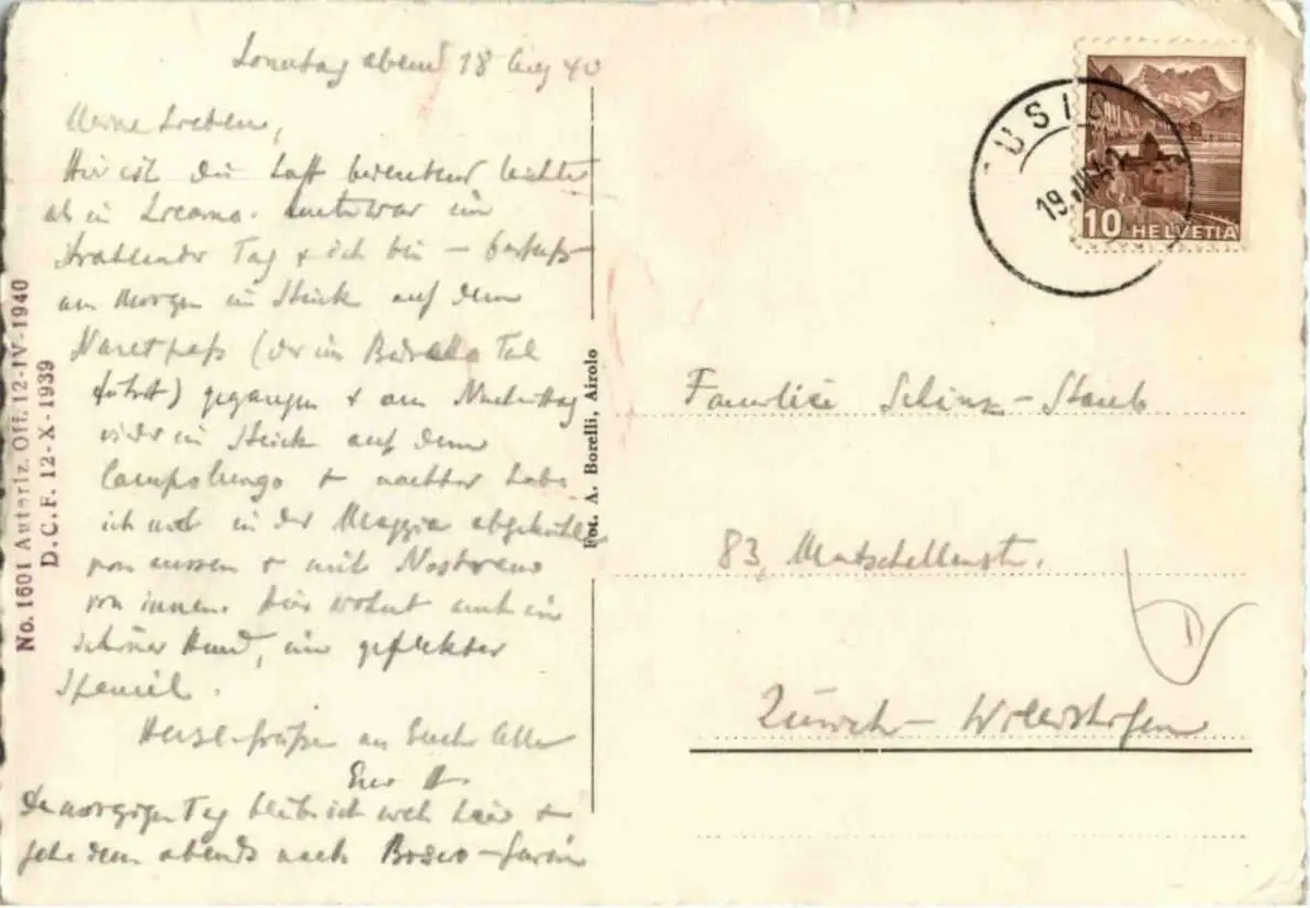 Danke. Alles Bestens. Können Sie mir allenfalls mitteilen, aus welchem Jahr die Postkarte stammt? Besten Dank.