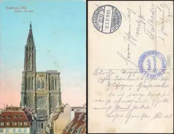 Fussartillerie-Regiment 2. Batterie Feldpost 13.3.1917 auf AK Strassburg Elsaß