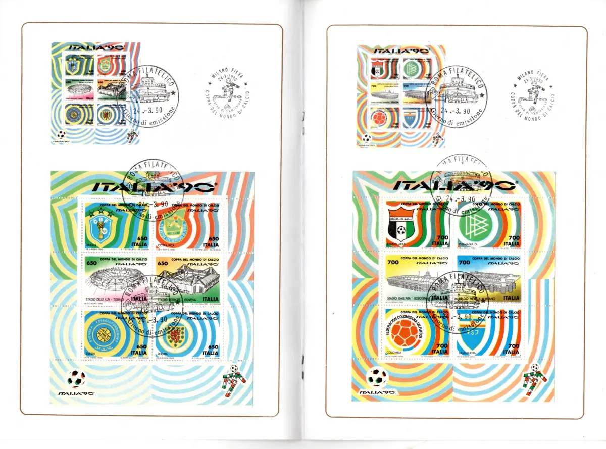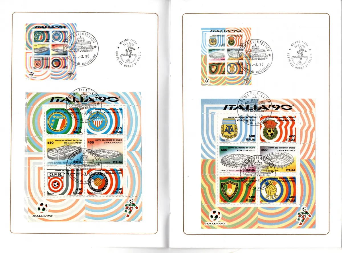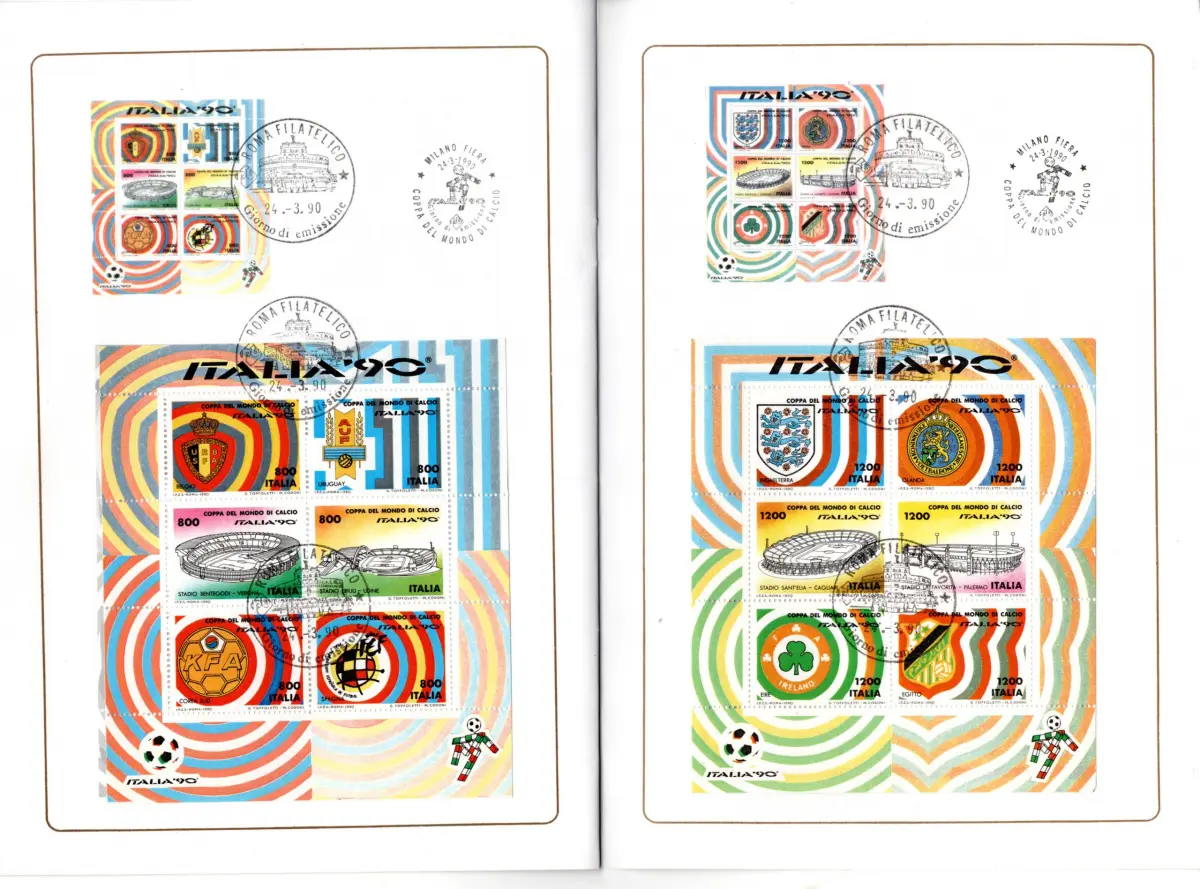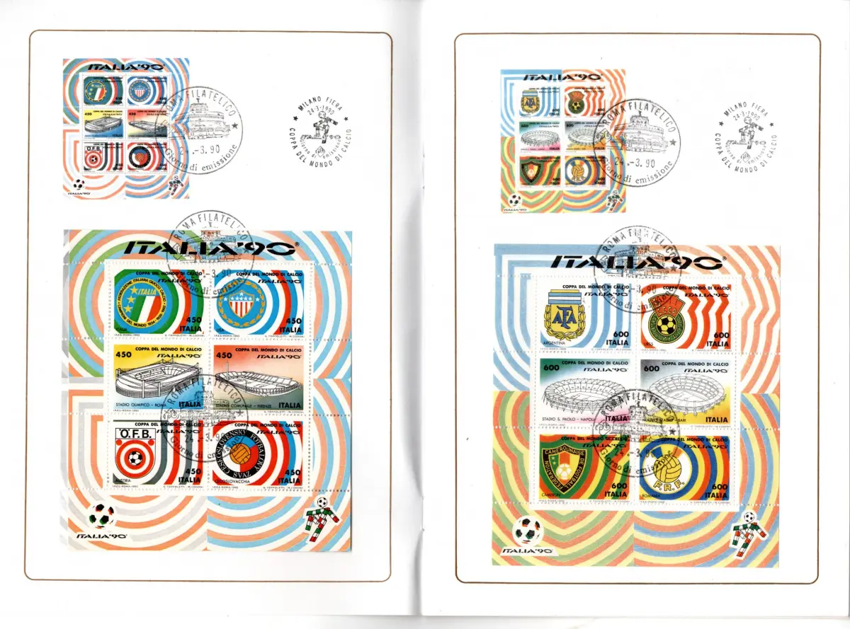 FRAGMENT - Calcio Italia '90 Das Ministerialbulletin zur Präsentation der neuen Ausgabe mit der Serie der sechs verschiedenen Zettel, die am ersten Ausgabetag mit der Briefmarke Roma Philatelico annulliert wurden - Ungewöhnlich, Gelegenheit für Sammler zum Thema Fußball Cod.463/182