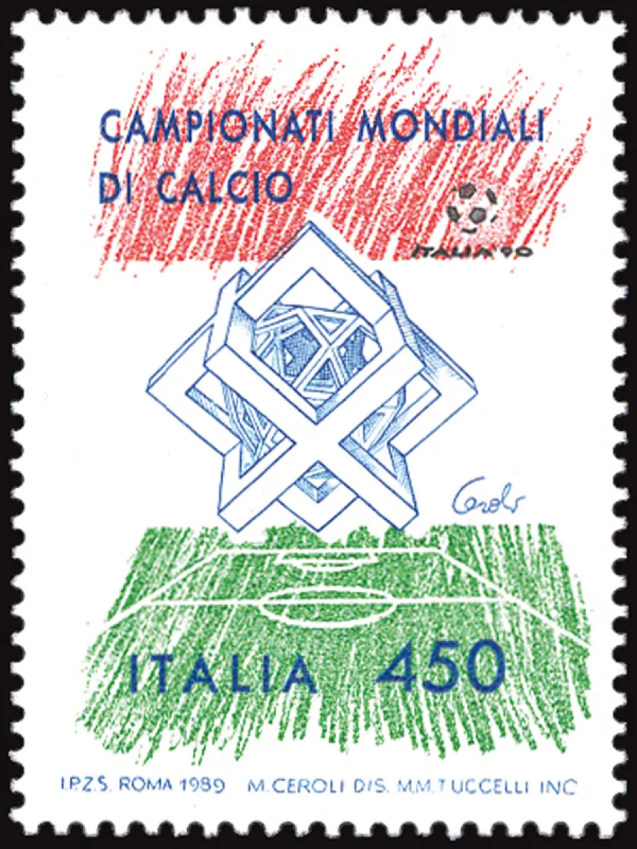 MNH - Vollgummi - - Fußball-Weltmeisterschaft Lire 450 Nr. 1887 mit Gründruck außerhalb des Registers (nach rechts verschoben) - Ungewöhnlich Cod.760/182