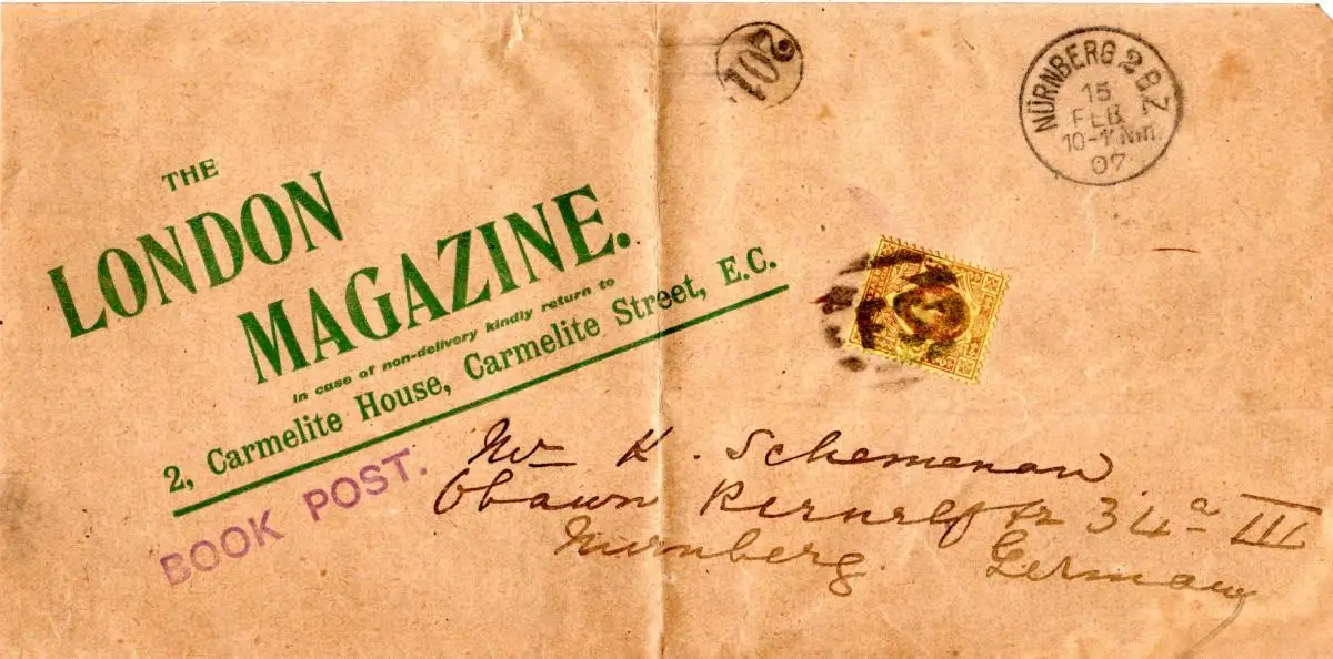 GB 1907, 3d on BOOK POST wrapper (heavy weight) to Bavaria. The London Magazine