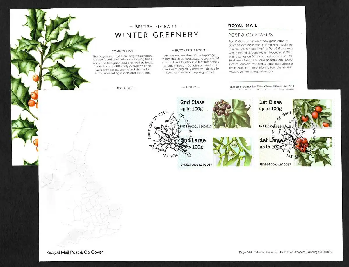 GB: Winter Greenery, British Flora, 1st class, FDC