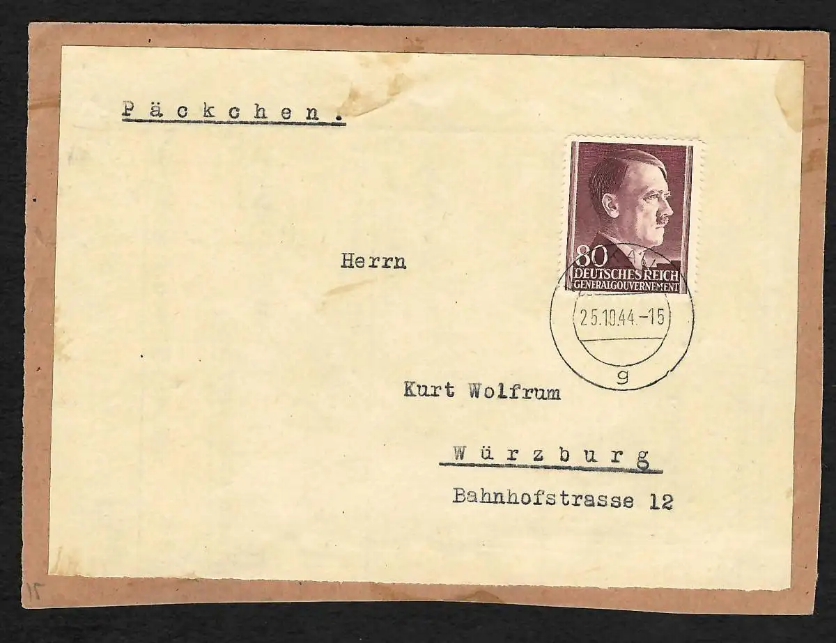 GG: Adressteil eines Päckchens 1944 mit 80 Gr. portogerecht frankiert ab Krakau