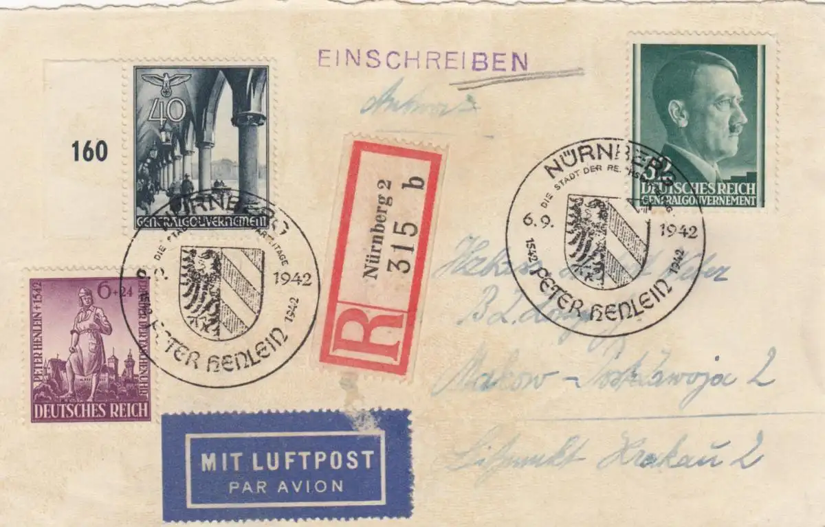GG: Antwortkarte Nürnberg, vorfrankiert als Einschreiben, Luftpost zufrankiert