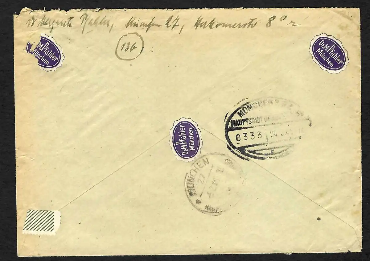 GG: Brief aus München mit B&M Frankatur nach Miechow, Einschreiben 8.1.45-zurück