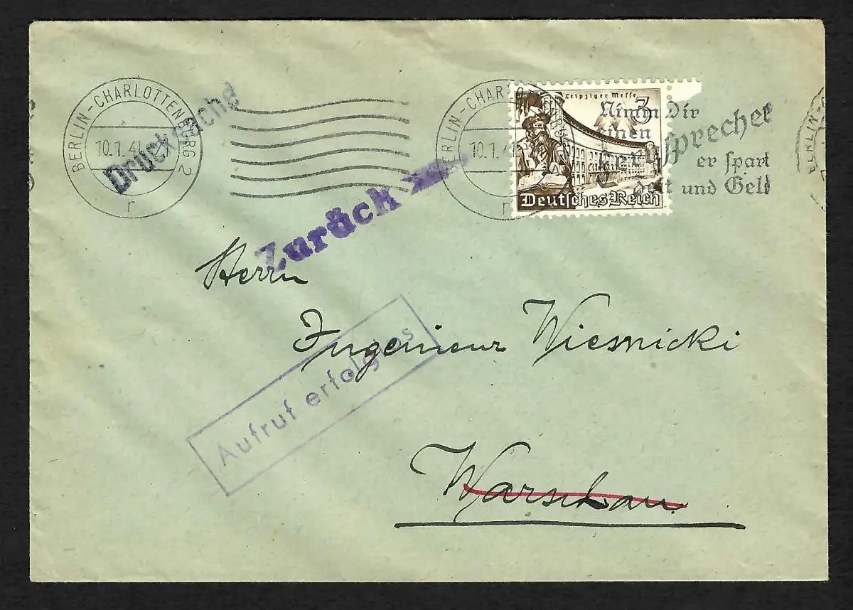GG: Brief von Berlin nach Warschau: Aufruf erfolglos - zurück: 1941