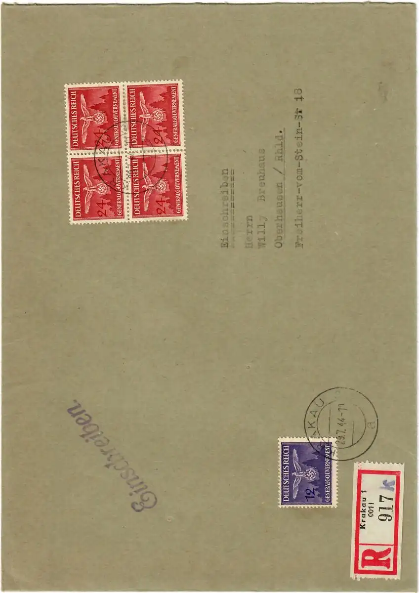 GG Dienst portogerechte MiF der 2. Gew. Stufe Einschreiben Krakau -Oberhausen