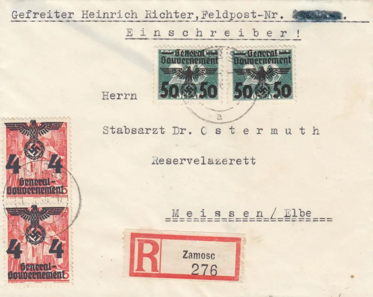 GG: Einschreiben Zamosc nach Meissen, portogerecht