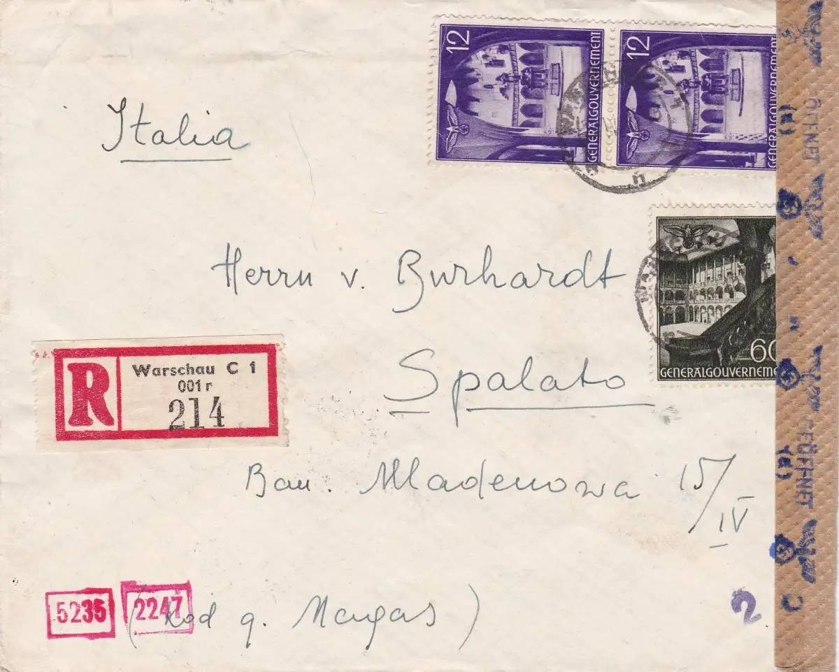 GG: Einschreiben von Warschau nach Italien, Zensur, Inlandstarif