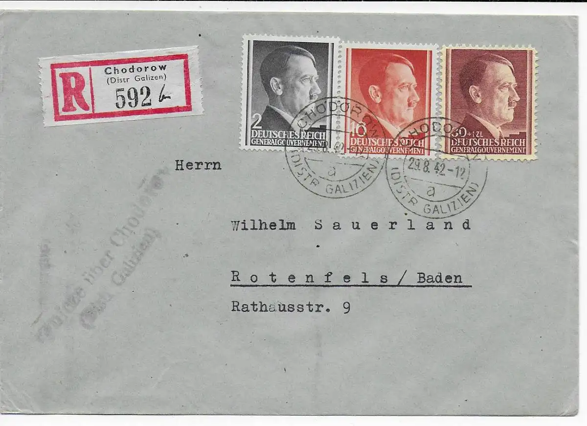 GG: Generalgouvernement Einschreiben Chodorow über Postagentur nach Rotenfels