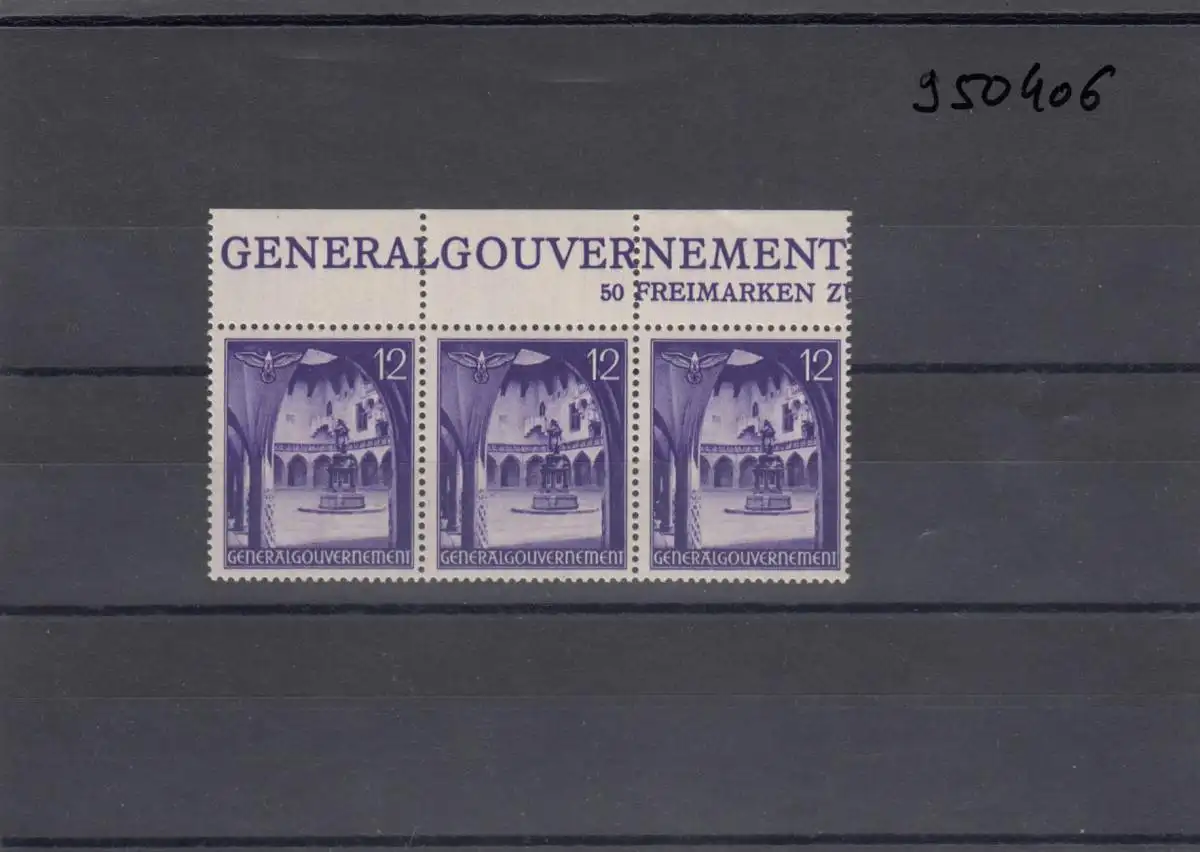 GG Generalgouvernement MiNr. 67, **, postfrisch, Oberrand Inschrift, 3 Felder