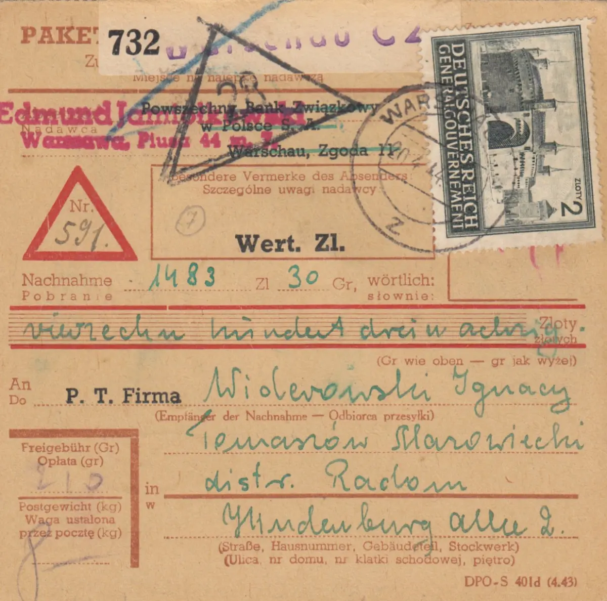 GG Inlandspaketkarte NN, Warschau-Radom, Eindruck Wert, Formular