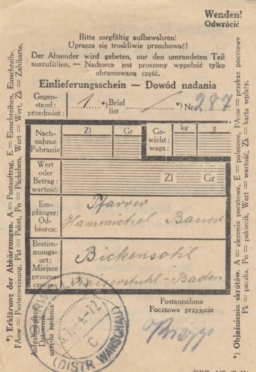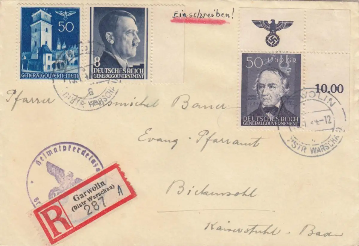 GG: MiF Bedeutende Deutsche, Einschreiben Garwolin - Bickensohl, portogerecht