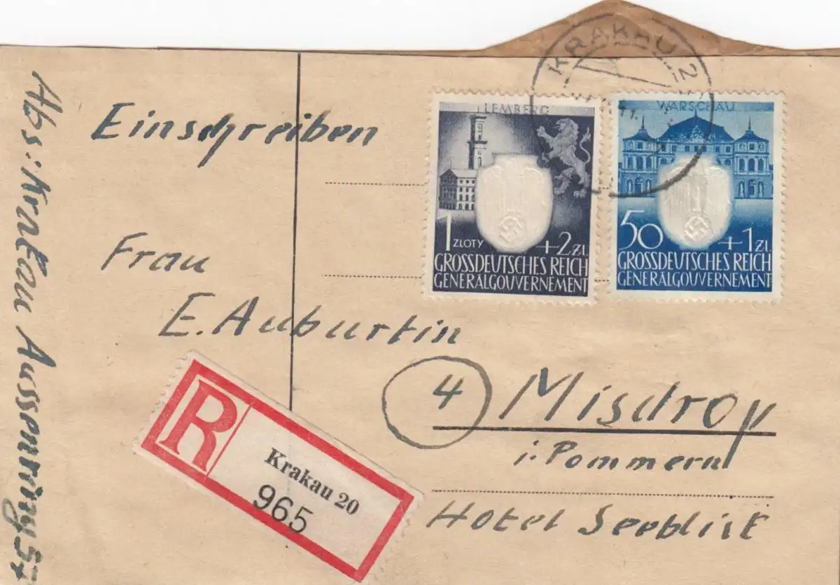 GG: MiF Einschreiben Krakau nach Misdroy, Vorderseite