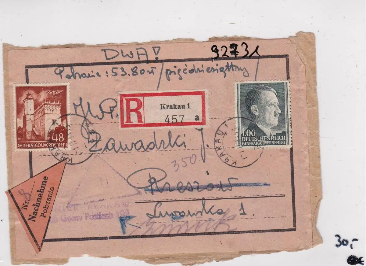 GG: Nachnahme Einschreiben Briefausschnitt, 2. Gew. Stufe