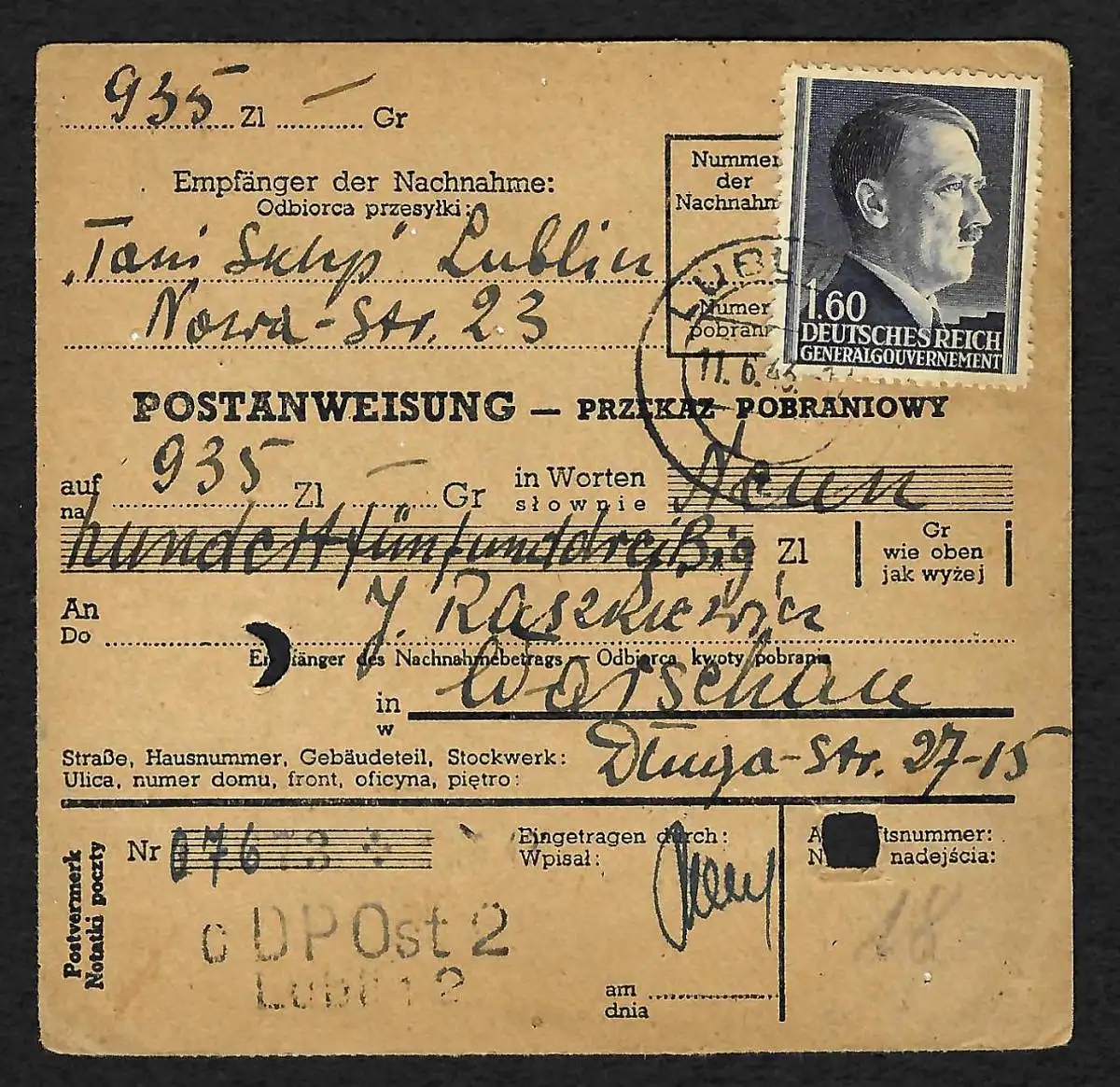 Aus einer Sammlung Post-Zahlungssysteme im Generalgouvernement