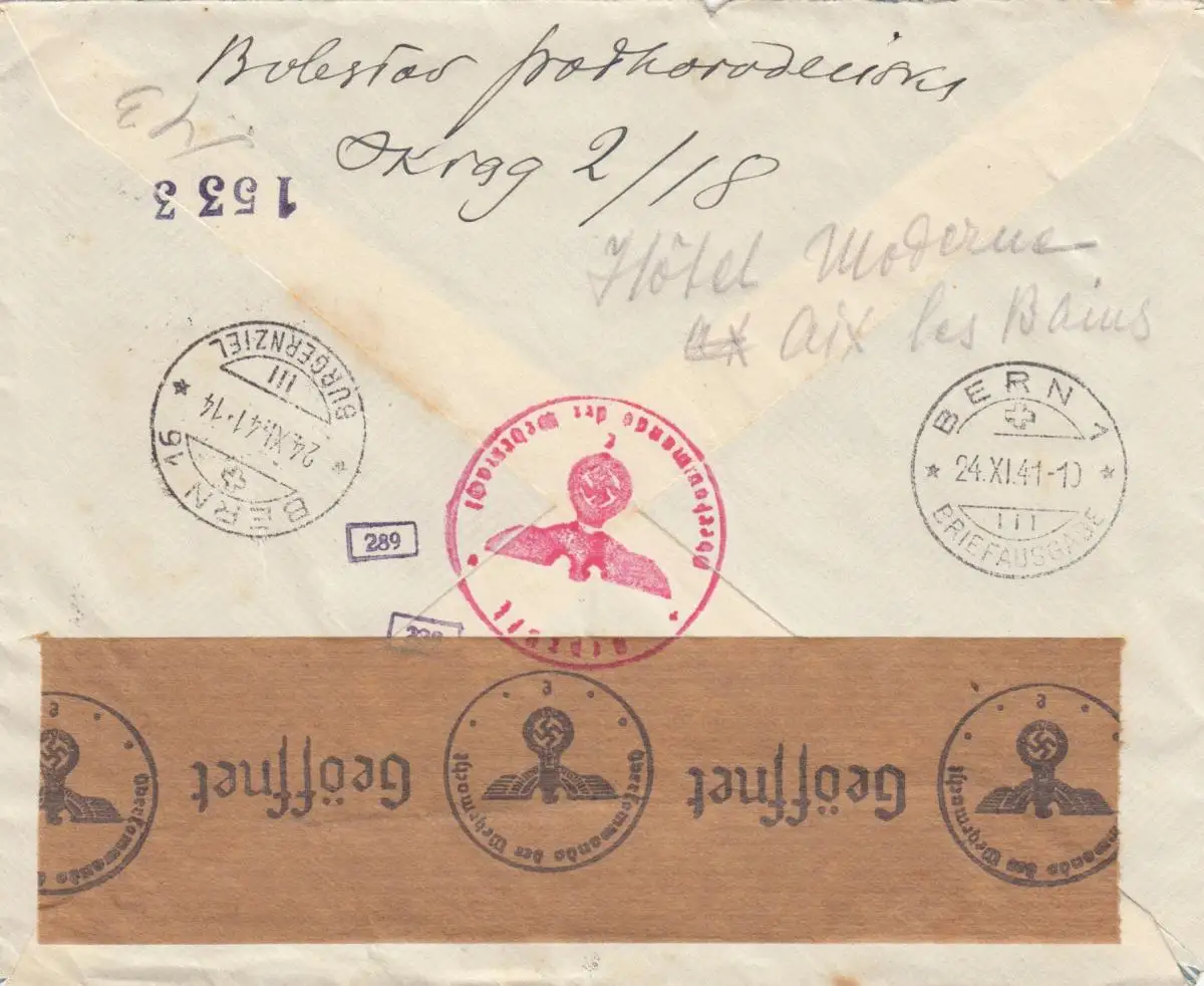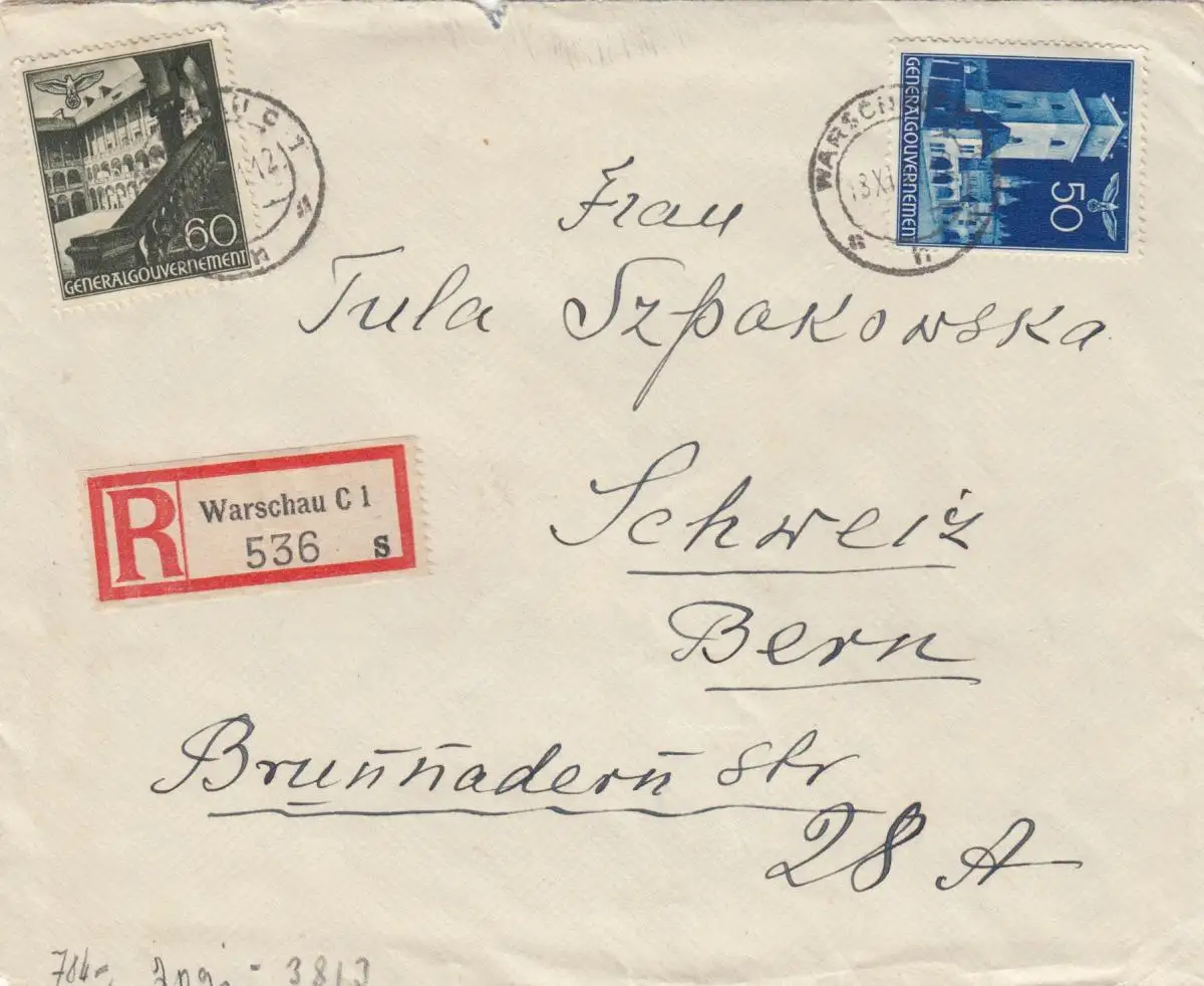 GG Schweiz Einschreiben Warschau nach Bern, Zensur