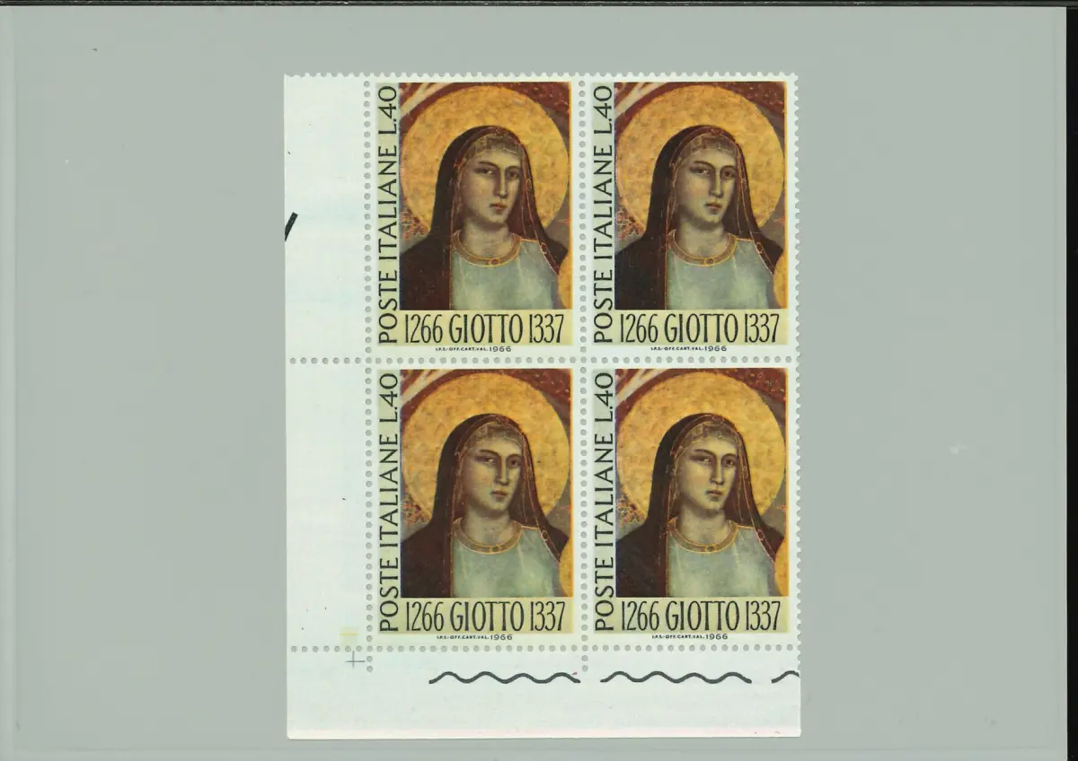 MNH - Vollgummi - GIOTTO 40 L. VIERTEL BLATTECKE AUF GRAUEM HINTERGRUND Cod. ITAV_1522