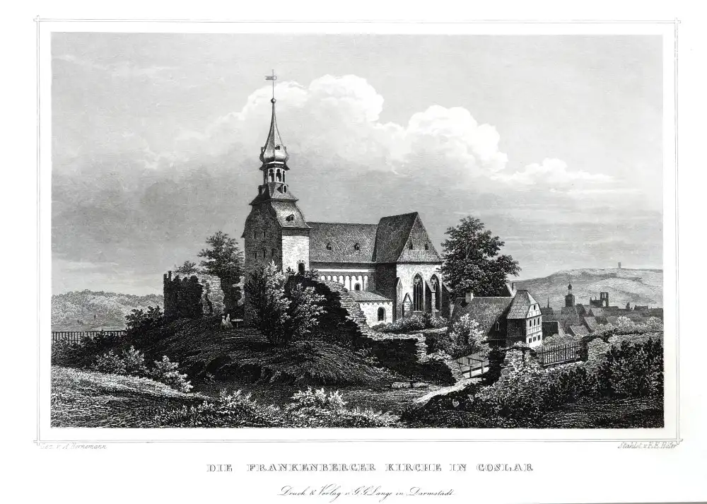 GOSLAR: Die Frankenberger Kirche. Originaler Stahlstich um 1850