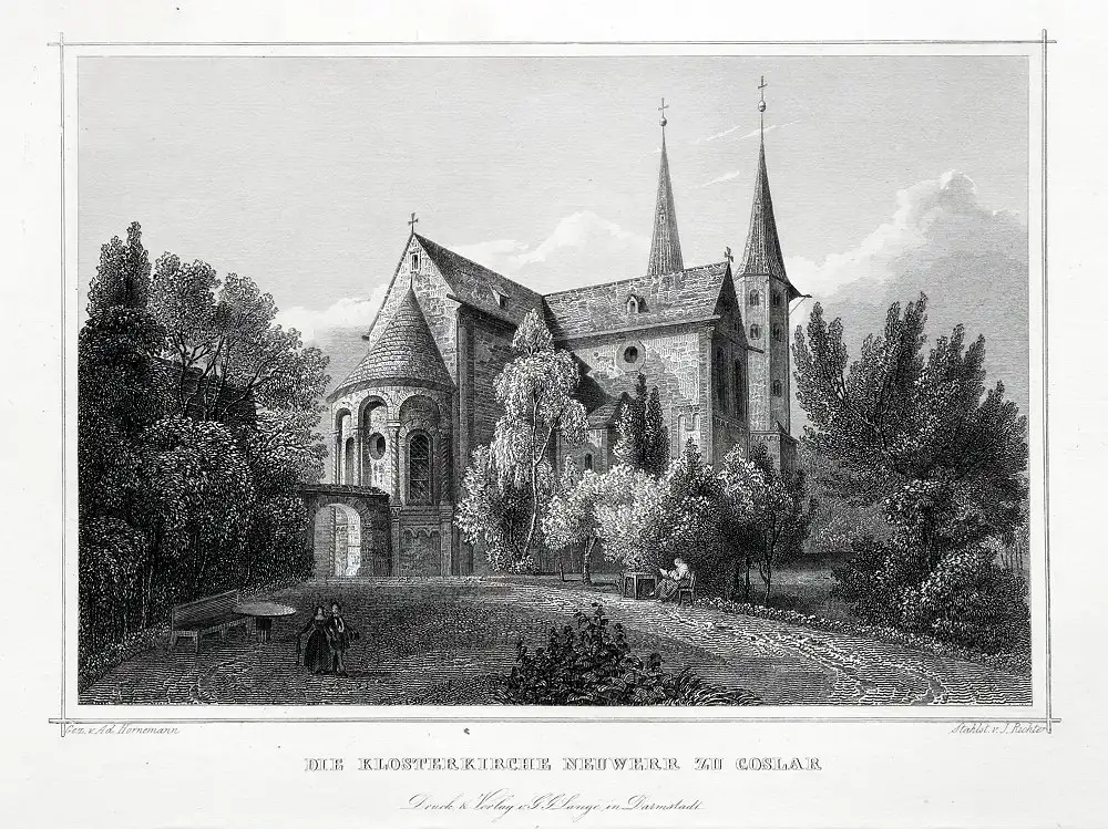 GOSLAR: Klosterkirche Neuwerr. Originaler Stahlstich um 1850