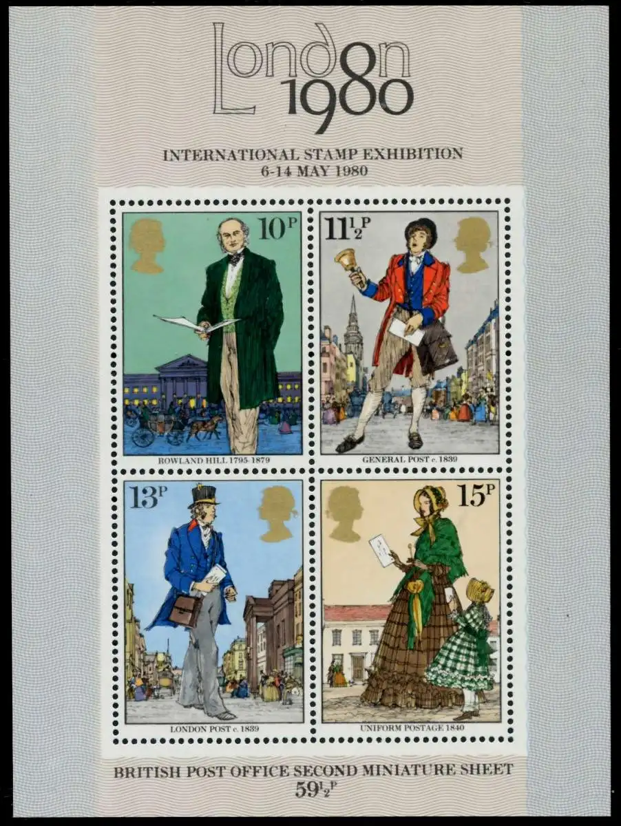 Blockausgabe zur Briefmarkenausstellung 1980 in London, mit Beschreibungskarte (MichelNr.: 804, 805, 806, 807)