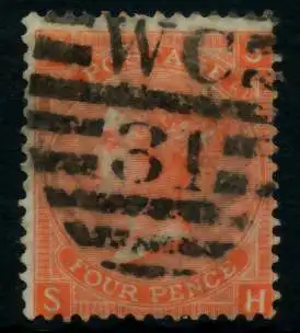 4P orange aus der Ausgabe Königin Viktoria, mit jeweils 4 großen weißen Eckbuchstaben, Wasserzeichen 4Z, Platte 12