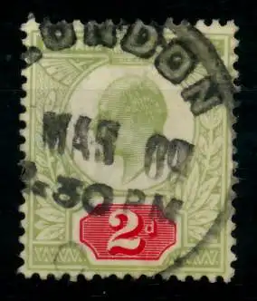 2P grün/rot aus der Ausgabe König Eduard VII, in Zähnung K14, ausgesuchte Stempelqualität