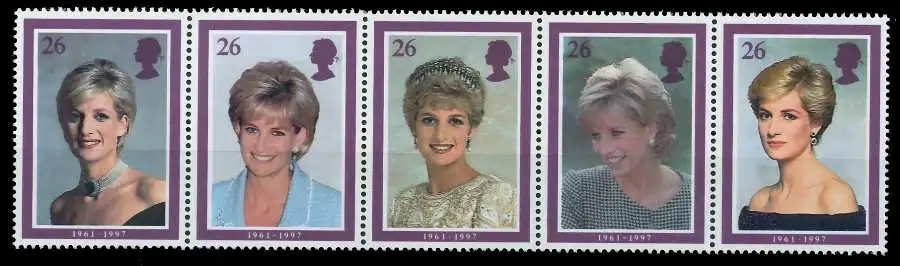 Tod von Prinzessin Diana, 5er Streifen, Zusammendruck