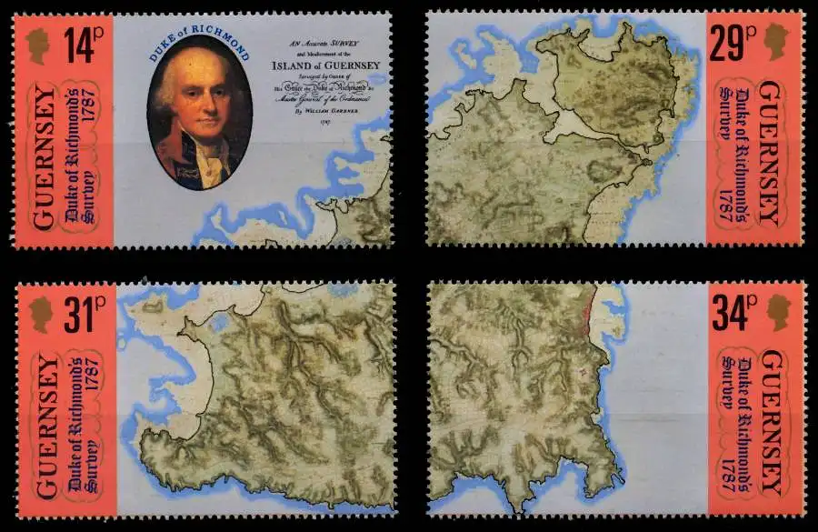 EInzelmarken aus der Blockausgabe Landkarte Guernsey