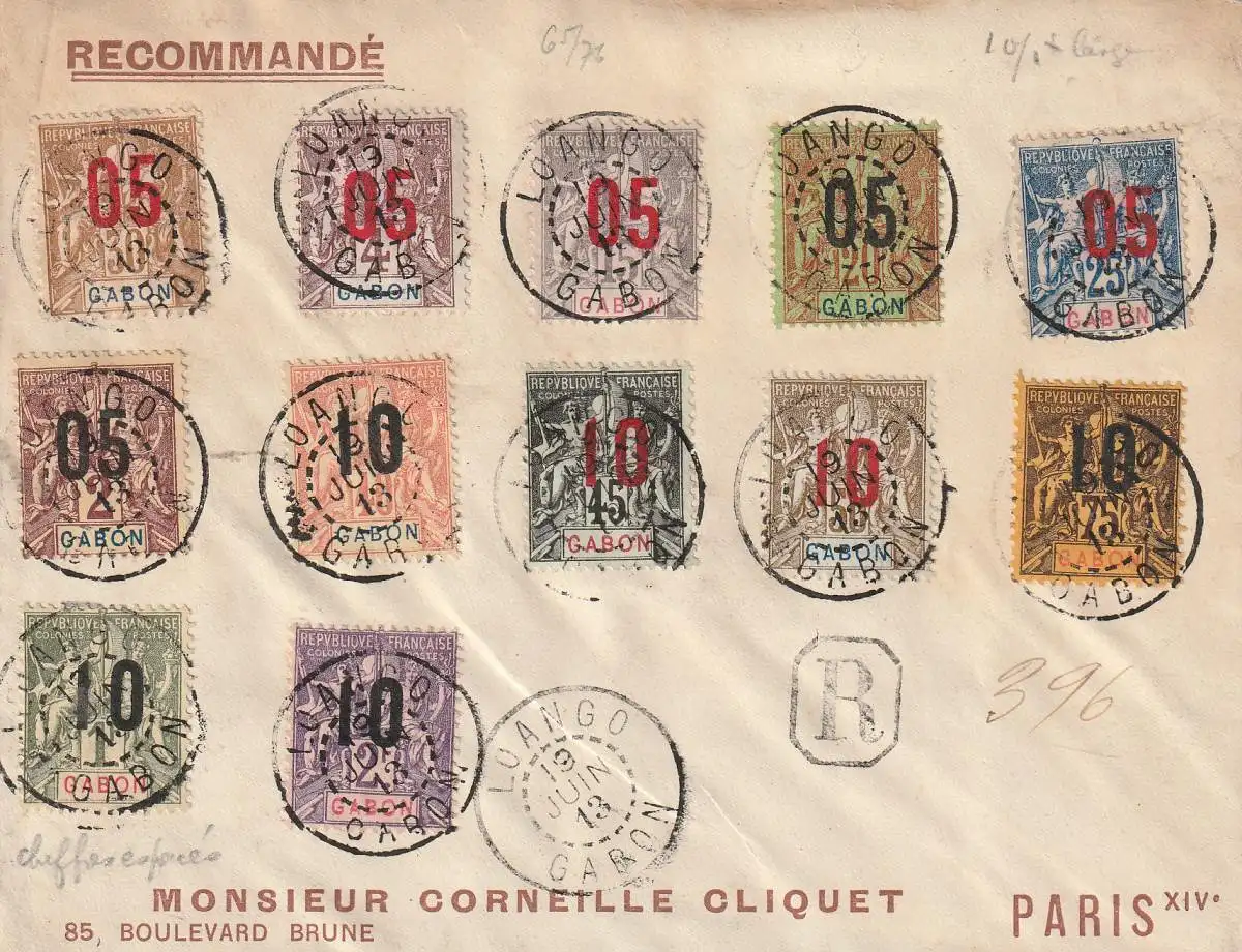GABUN / GABON - 1913, Michel 72 - 84, Satzbrief Einschreiben