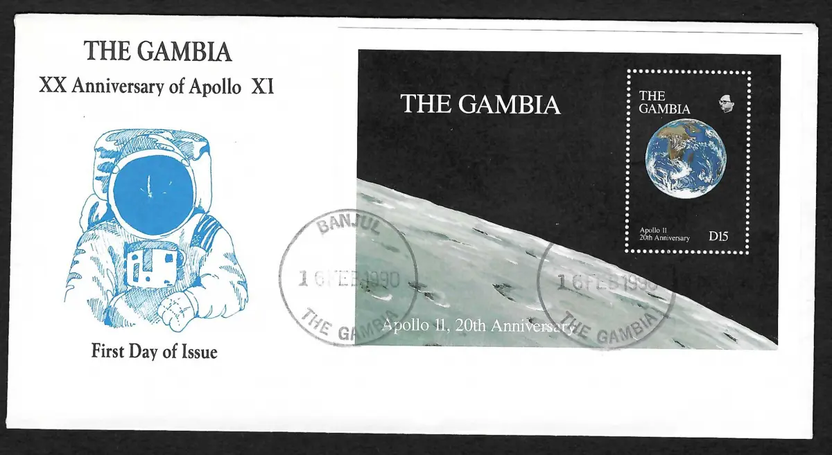 Gambia 1990: 20th Anniversary of Moon Landing, FDC, Apollo 11, Block #90