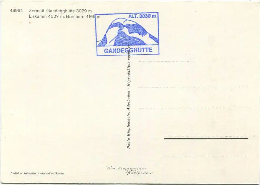 Gandegghütte - Liskamm mit Breithorn - AK Grossformat - Verlag Photo Klopfenstein Adelboden