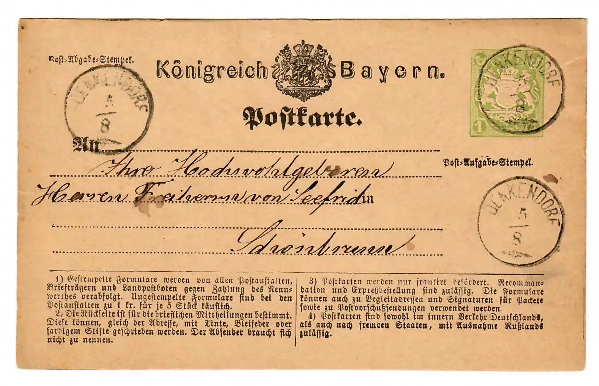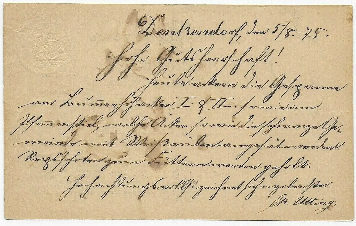 Ganzsache Denkendorf 1875